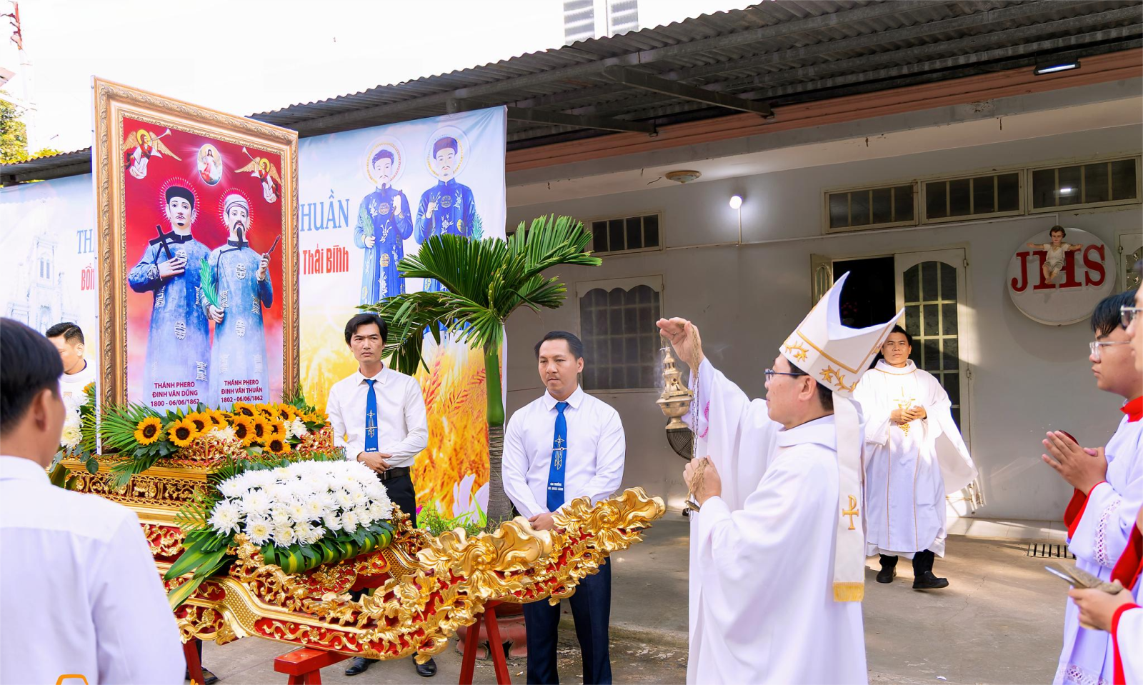 Ngay sau cuộc rước kiệu, Thánh lễ trọng thể được cử hành với sự chủ tế của Đức cha Đa-minh Đặng Văn Cầu - Giám mục Giáo phận Thái Bình. Cùng đồng tế có quý cha trong và ngoài giáo phận, quý tu sĩ nam nữ, và đông đảo bà con đồng hương từ khắp nơi quy tụ về.