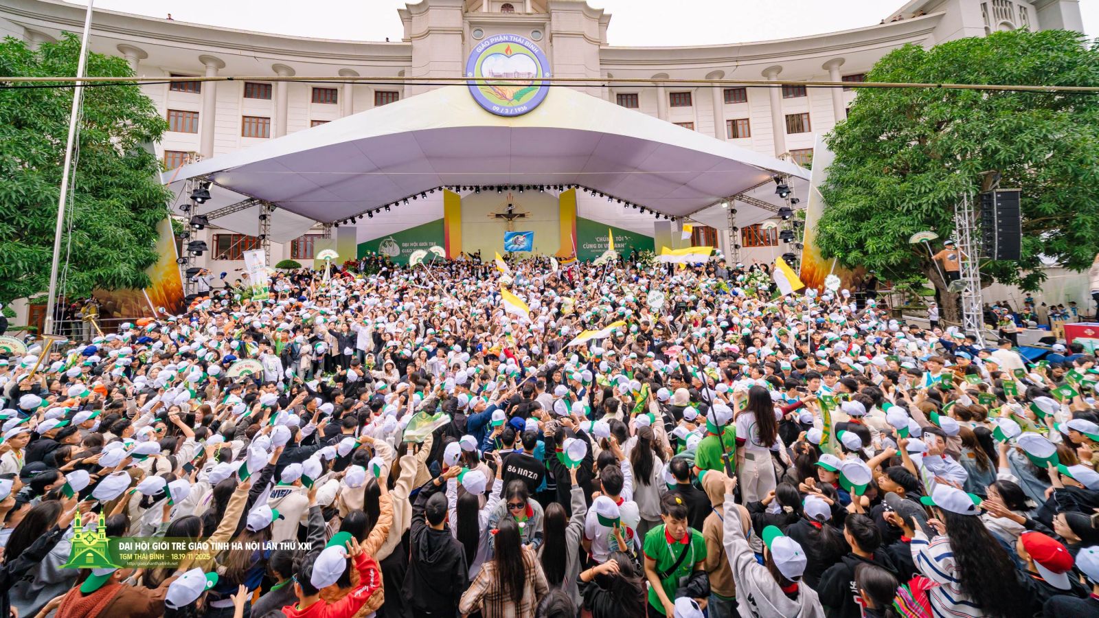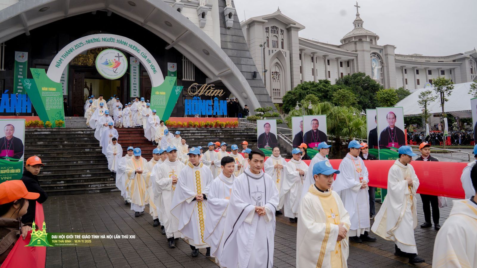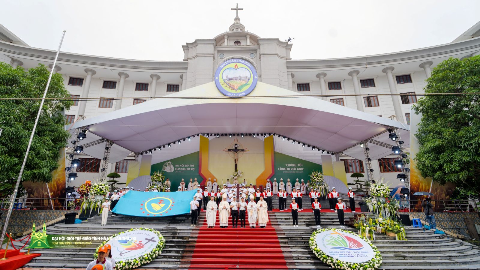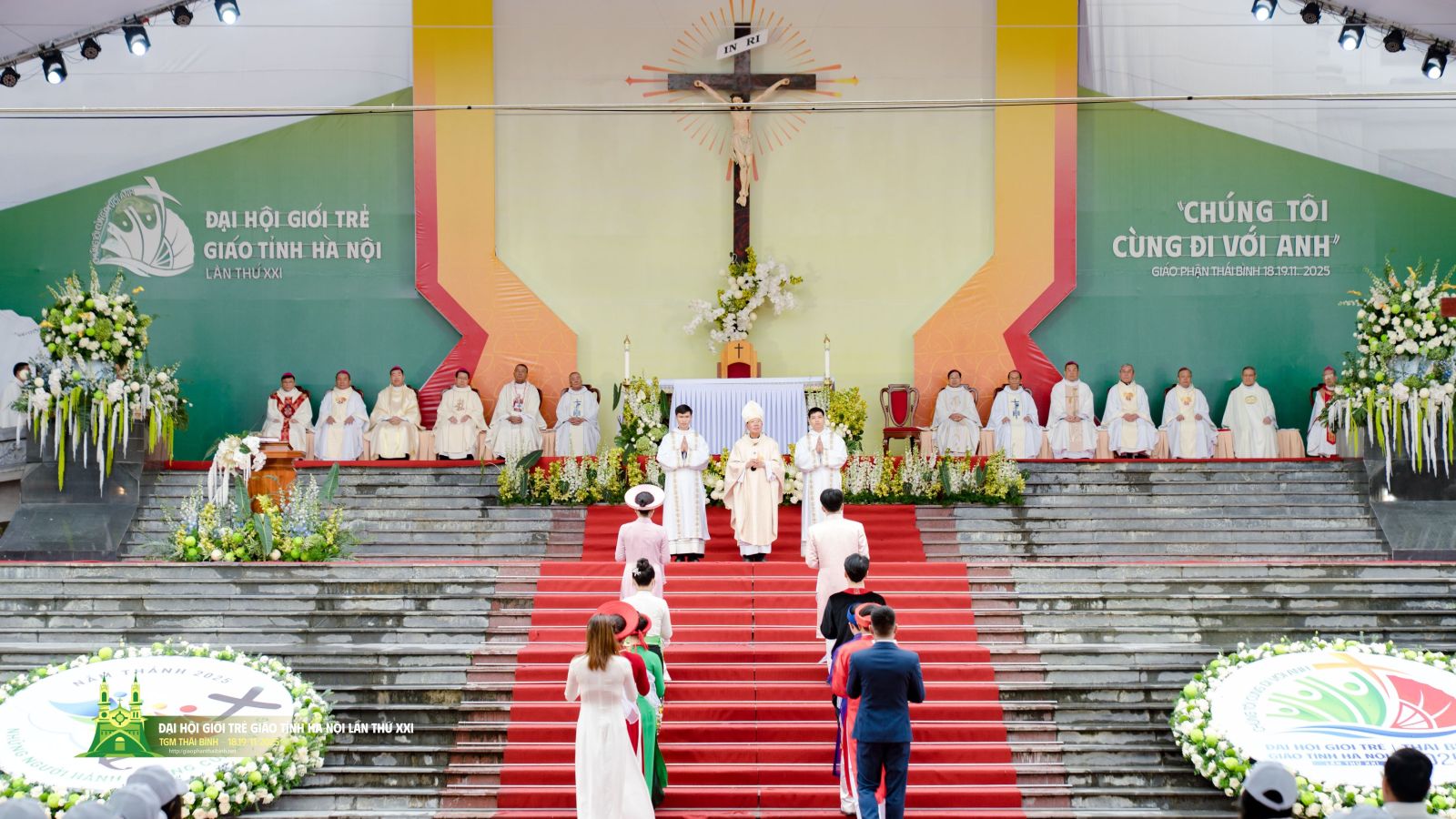 Ngay sau đó, Nghi thức bế mạc đại hội được cử hành với phần trao Thánh Giá và cờ Đại hội Giới trẻ cho Giáo phận Phát Diệm (nơi sẽ diễn ra Đại hội lần thứ XXII vào năm 2026) – được cử hành thật trang trọng, thắm đượm tình bác ái, hiệp nhất và yêu thương.