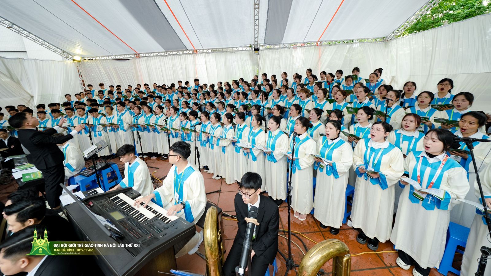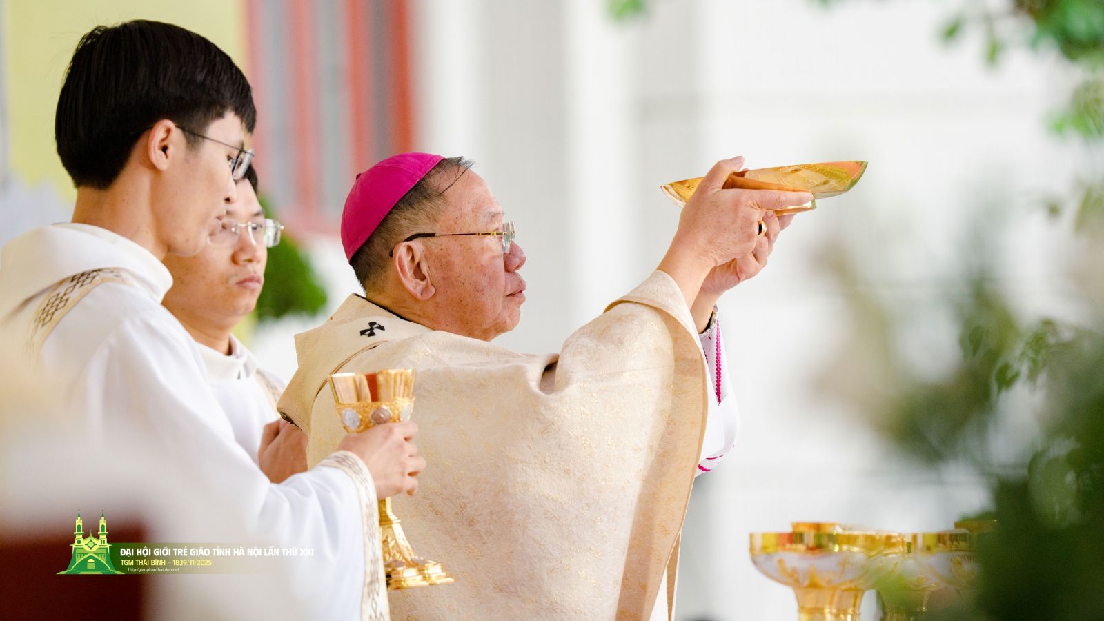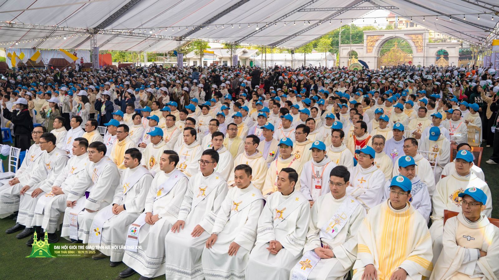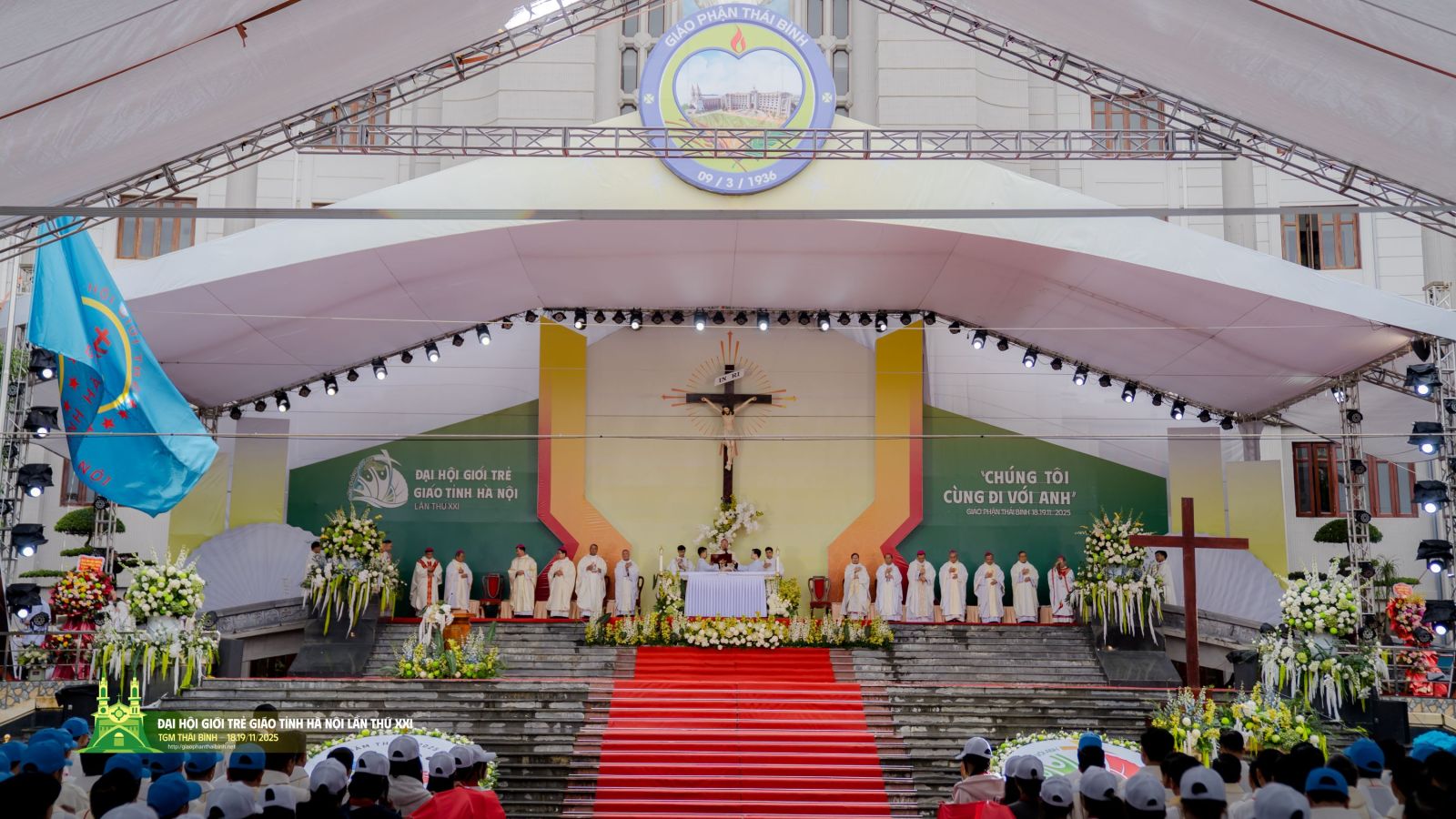 Thánh lễ tạ ơn do Đức TGM Giu-se Vũ Văn Thiên chủ tế. Đồng tế trong Thánh lễ có quý Đức cha, quý cha, quý thầy phó tế và sự hiệp thông của quý tu sĩ, chủng sinh cùng các bạn trẻ đến từ khắp các giáo xứ trong Giáo tỉnh Hà Nội.