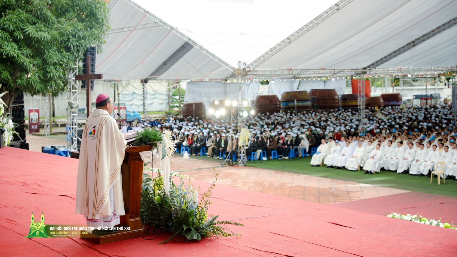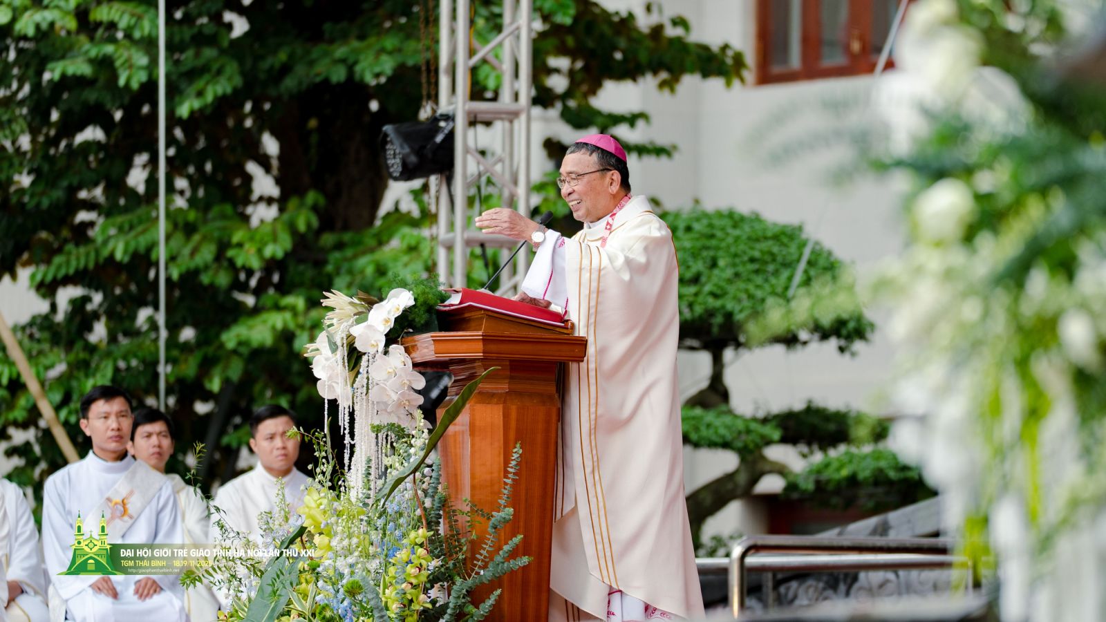Sau cùng, Đức cha Vinh-sơn mời gọi các bạn trẻ cần biết từ bỏ cám dỗ, cùng yêu thương và bước đi với nhau nhờ có Chúa song hành trợ giúp. Đồng thời qua Đại hội tại Giáo phận Thái Bình, Đức cha Vinh-sơn cảm nhận về tình hiệp nhất và gắn kết sâu sắc giữa giáo phận chủ nhà với tất cả anh em trong Giáo tỉnh. Ngài cũng gửi lời cám ơn chân thành đến các bạn trẻ vì những hy sinh và nhiệt huyết tuổi trẻ; ước mong ước khi rời Đại hội, những tâm hồn trẻ sẽ luôn giữ trái tim rực sáng và mạnh mẽ trong tinh thần sống đạo, hiệp hành cùng nhau tiến bước.