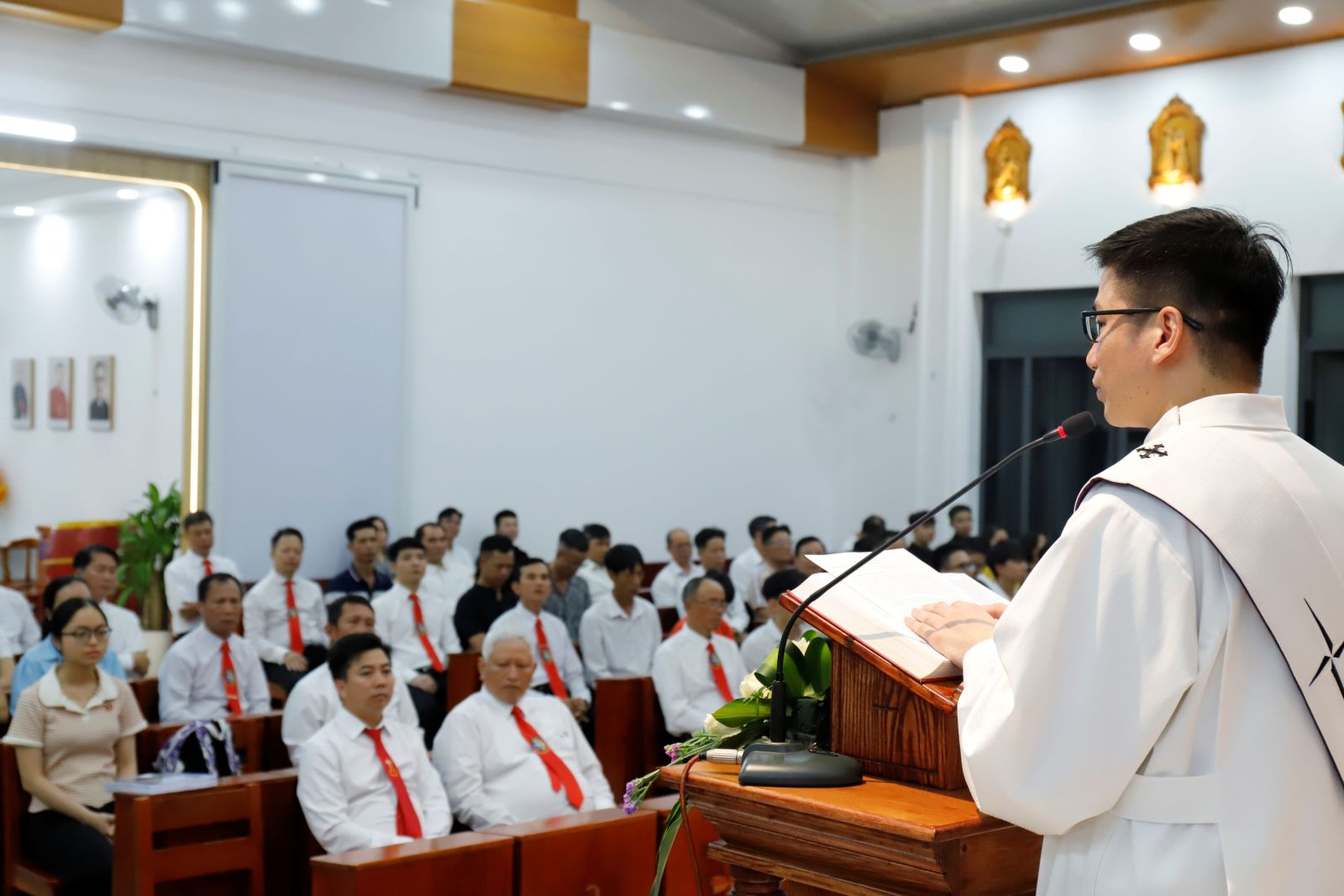 Sau khi chú tâm lắng nghe Bài Phúc Âm, cộng đoàn tiếp tục đón nhận phần chia sẻ Lời Chúa của Thầy Phó tế Giêrônimô Phạm Thanh Khương, Tu sĩ dòng Đa-minh. Trong bài chia sẻ, Thầy gợi lên bốn ý nghĩa sâu sắc của ngày lễ. Trước hết, Thánh lễ tiệc ly là ‘đêm của Bí tích Thánh Thể’ khi Chúa Giêsu trao ban chính mình làm lương thực nuôi dưỡng con người qua hình bánh và rượu. Đây cũng được gọi là ‘đêm của chức Linh mục’, qua đó Thiên Chúa tiếp tục nối dài cử chỉ yêu thương của Ngài trong dòng lịch sử nhân loại. Chúa Giê-su mời gọi người linh mục không chỉ dừng lại ở việc cử hành Thánh lễ, nhưng còn phải dấn thân phục vụ, biết cúi mình nâng đỡ những tâm hồn yếu đuối, trở nên dấu chỉ của tình yêu và lòng thương xót giữa trần gian. Đêm nay cũng là ‘đêm của cử chỉ rửa chân’, là bài học sống động về tinh thần phục vụ khiêm nhường, chấp nhận cho đi những gì cao quý nhất của mình vì yêu. Và cuối cùng, ‘đêm của tình bạn hữu’ là lời nhắn nhủ rằng Chúa luôn ở bên chúng ta ngay cả khi chúng ta còn tội lỗi. Dù có phản bội như Giu-đa, có chối thầy như Phê-rô hay bỏ chạy như các môn đệ khác, Chúa Giêsu vẫn gọi ta là "bạn", vẫn cúi xuống rửa chân và trao ban chính Thân mình Ngài cho chúng ta, và điều quan trọng là chỉ cần ta biết mở lòng để Người chạm đến, chữa lành và nâng đỡ những vết thương trong tâm hồn.