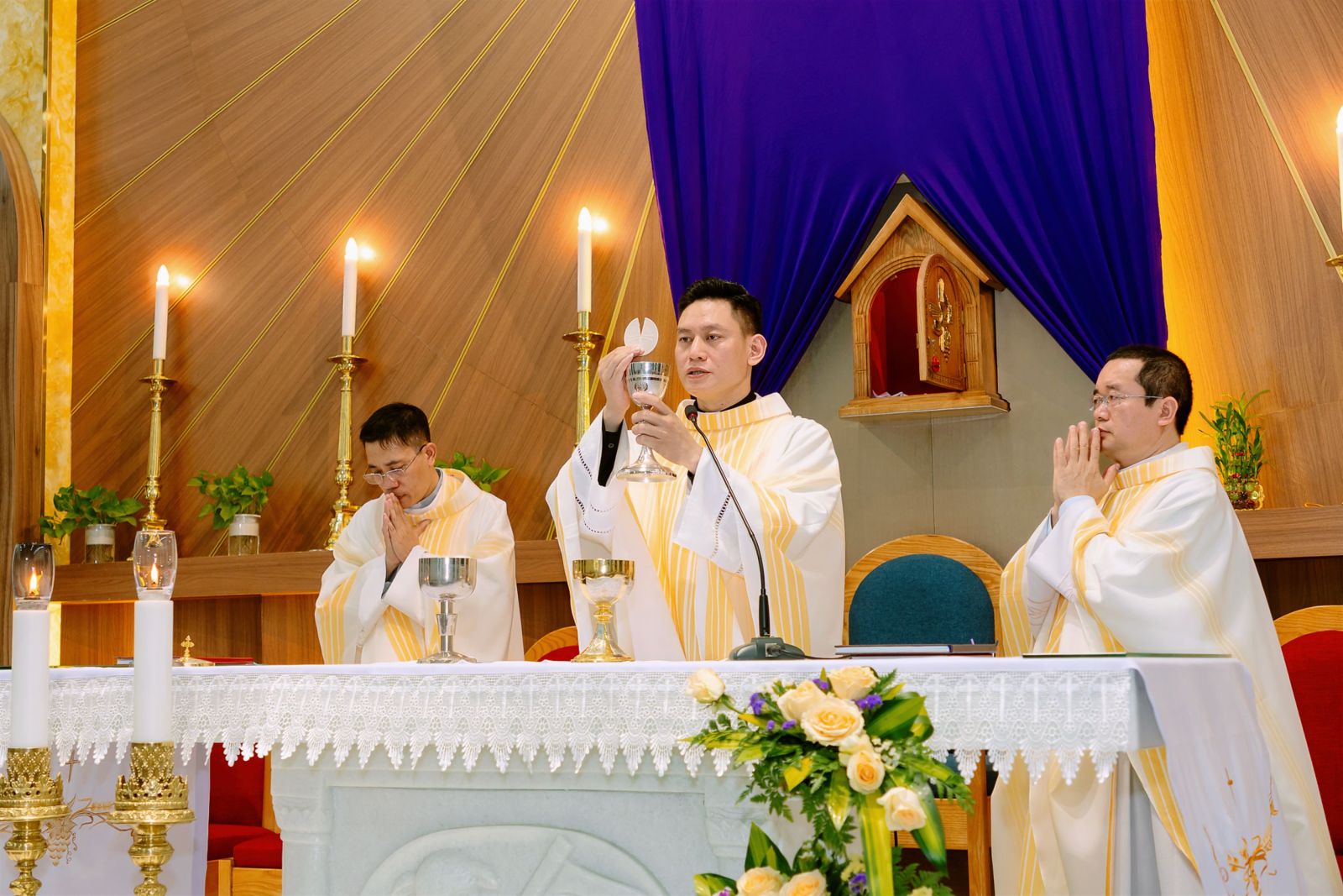 Chiều ngày 02/4/2026, cộng đoàn đồng hương giáo phận đã cùng quy tụ tại Trụ sở Giáo phận Thái Bình – Miền Nam, chuẩn bị các công việc để Thánh lễ Tiệc Ly được diễn ra trang nghiêm và sốt sắng. Đúng 18h30, đoàn rước tiến bước vào ngôi nhà nguyện nhỏ bé nhưng ấm cúng nơi Trụ sở. Thánh lễ do cha Vinhsơn Hoàng Văn Phận chủ sự đã được cử hành cách long trọng. Mở đầu Thánh lễ, cha Vinhsơn nhắc lại ý nghĩa cao trọng của Lễ Tiệc Ly: tưởng niệm việc Đức Giêsu thiết lập Bí tích Thánh Thể, chức linh mục và giới răn yêu thương.