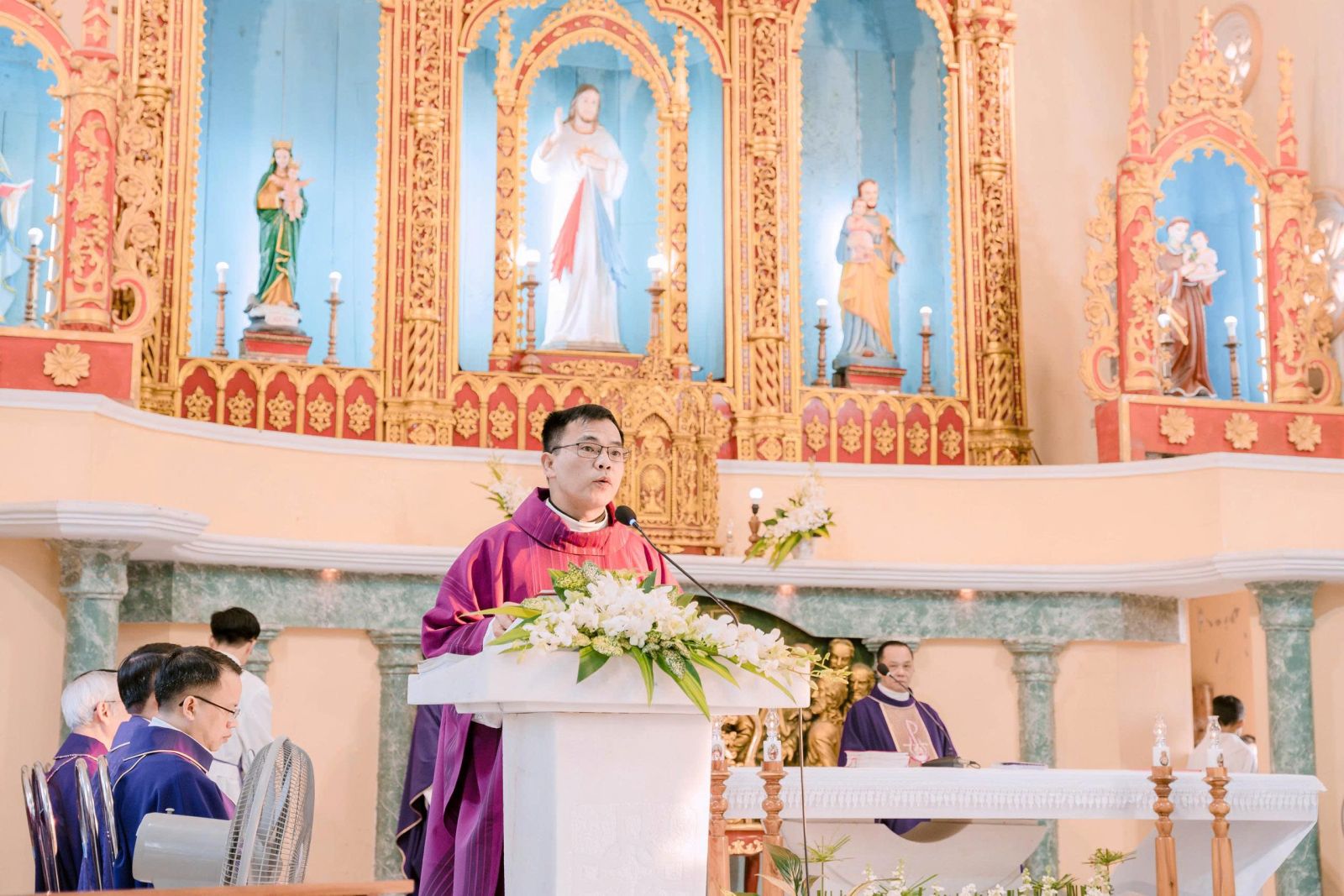 Trong bài giảng lễ, cha chủ tế Giu-se chia sẻ về sự công chính của Thánh Cả Giu-se trong chương trình cứu độ của Chúa khi đón nhận Thánh ý của Người. Điều đó được thể hiện rõ nét trong việc âm thầm nghe tiếng Chúa nói và thực hiện trong sự khiêm tốn, chấp nhận thay đổi kế hoạch của bản thân với sự bình an nội tâm. Từ đó, cha Giu-se nhắn nhủ cộng đoàn phụng vụ hãy học hỏi mẫu gương của Thánh Cả Giu-se trong sự tĩnh lặng để nghe tiếng Chúa; nói ít - làm nhiều, làm theo lời Chúa mách bảo; ngoan ngoãn cộng tác với Chúa trong khả năng của mình; cùng cộng tác với cha quản nhiệm để xây dựng cộng đoàn giáo xứ ngày càng phát triển hơn.