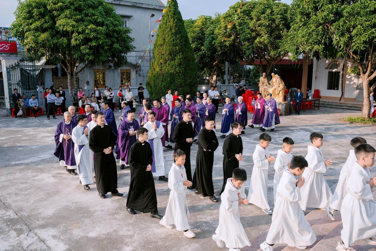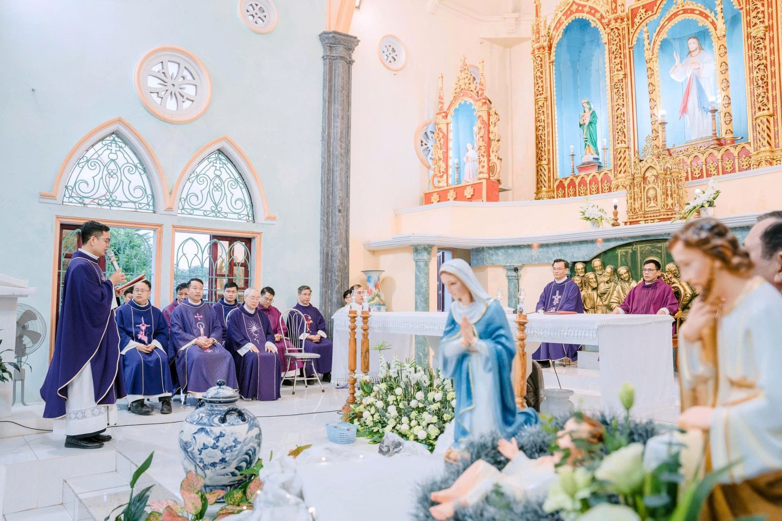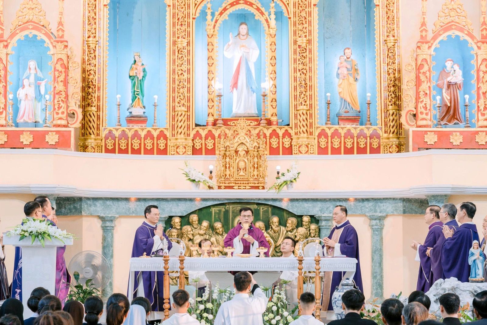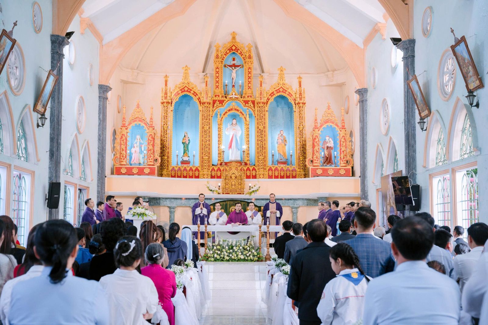 Sau cuộc rước, Thánh lễ được cử hành thật sốt sắng, long trọng.