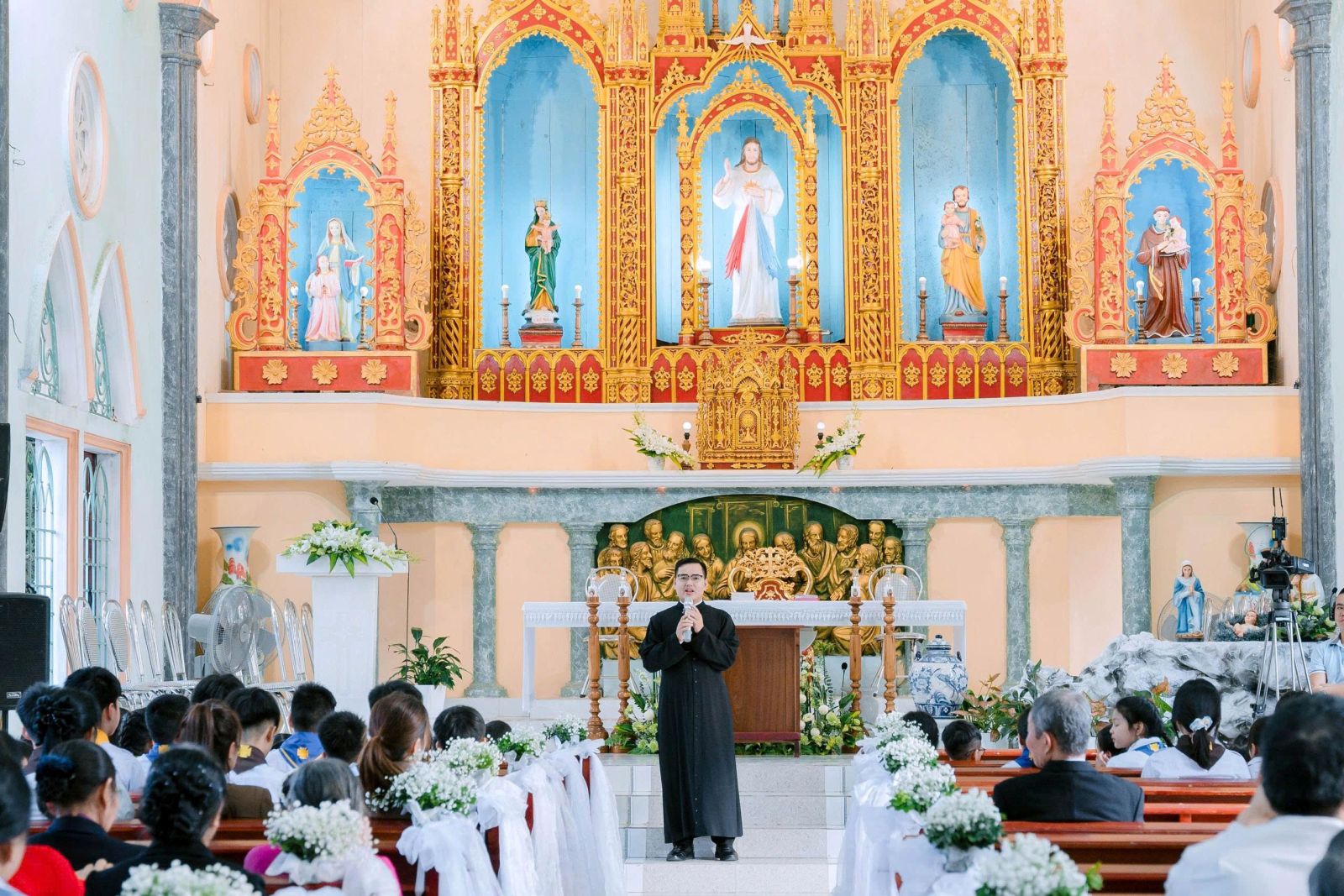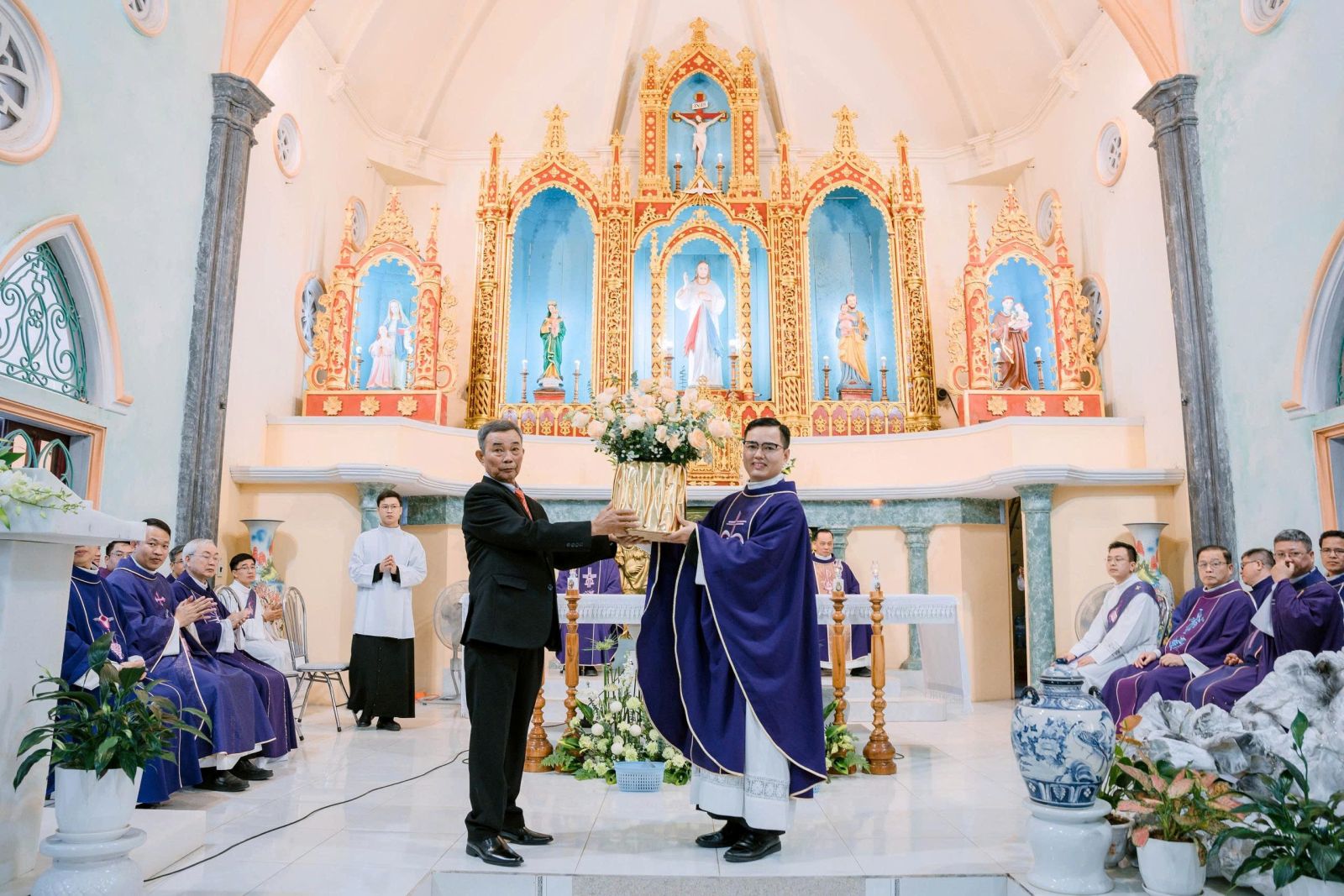 Cộng đoàn Giáo xứ và các ban ngành đoàn hội cũng bày tỏ lòng vui mừng qua những bó hoa tươi thắm chúc mừng cha Tân Quản nhiệm. Nguyện xin Chúa thương ban mọi ơn lành hồn xác xuống trên cha Quản nhiệm Gio-a-kim và cộng đoàn giáo xứ để qua đời sống chứng nhân, ánh sáng Tin Mừng sẽ được lan toả nơi mảnh đất thân thương này.