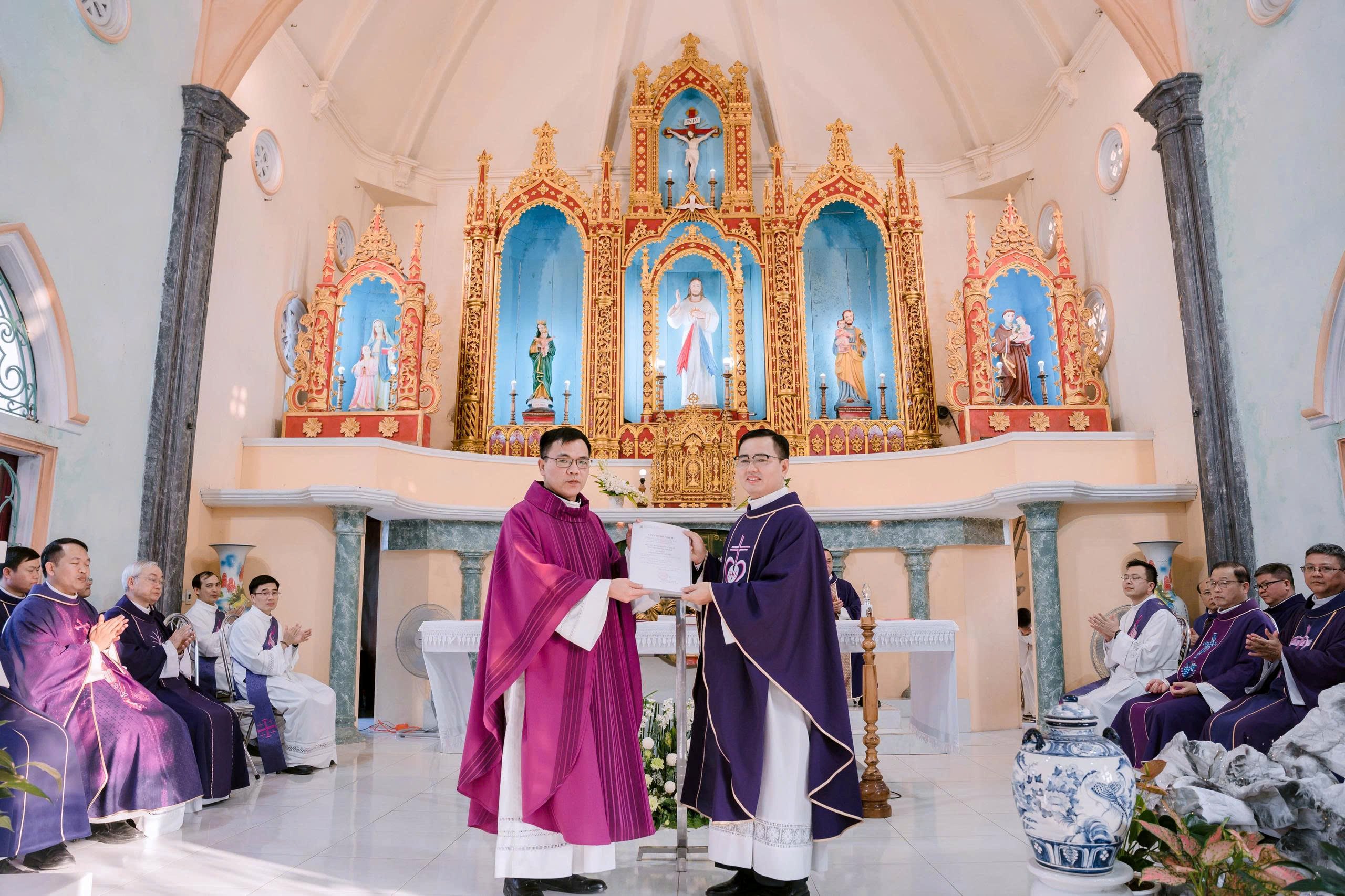 Mở đầu Thánh lễ, Cha Quản hạt Giu-se đã giới thiệu cha Gio-a-kim Đỗ Văn Phú với cộng đoàn giáo xứ và trao Bổ nhiệm thư của Đức Giám mục Đa-minh Đặng Văn Cầu cho cha Gio-a-kim. Sau đó, linh mục Tân Quản nhiệm Gio-a-kim Đỗ Văn Phú đứng trước bàn thờ, dưới sự chứng kiến của cha Quản hạt, quý cha đồng tế và cộng đoàn: Tuyên xưng đức tin, đặt tay trên Sách Thánh tuyên thệ trung thành, cùng nguyện xin Thiên Chúa giúp sức trong sứ vụ mới.