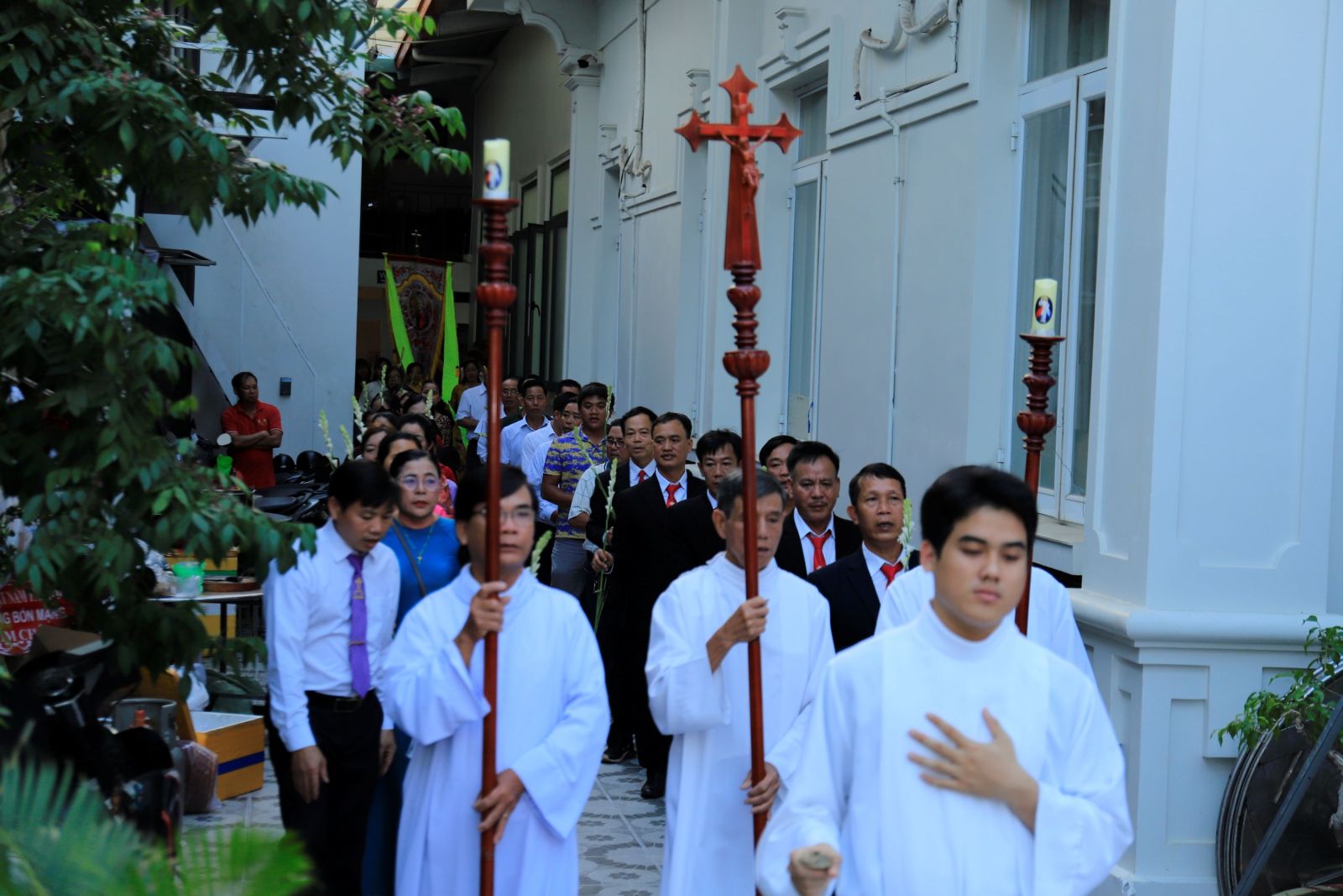 Vào lúc 17g15, cộng đoàn long trọng cung nghinh kiệu ảnh Truyền Tin chung quanh khuôn viên Trụ sở. Đoàn rước diễn ra trong sự trang nghiêm và sốt sắng. Tiếng hát kính Đức Mẹ vang lên hòa cùng bước chân của cộng đoàn như lời diễn tả tâm tình yêu mến và noi gương Đức Maria – Đấng đã khiêm nhường thưa lời “Xin Vâng” để chương trình cứu độ được thực hiện.