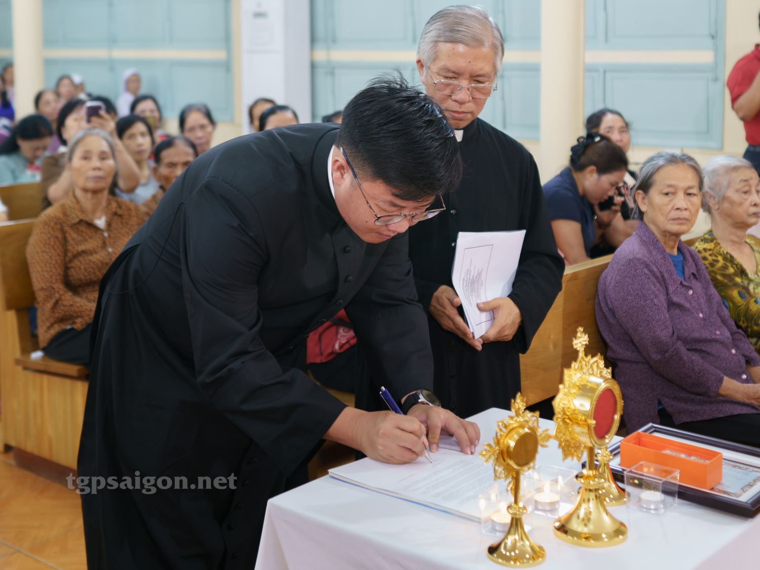 Sau đó là nghi thức ký biên bản và trao nhận thánh tích, trong đó cha Anthony Bunly đọc Biên bản Trao nhận và Xác nhận Lưu giữ Thánh tích Thánh Carlo Acutis của cha Will Conquer (Hội Thừa Sai Paris), chính thức trao các thánh tích, trong tinh thần hiệp thông sâu sắc giữa các Giáo hội địa phương.
