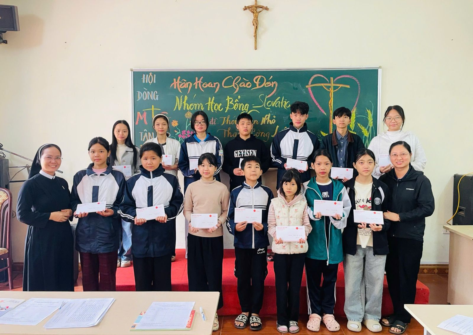Chương trình trao học bổng “Con đường sáng – Slovakia” tại giáo xứ Hưng Yên hôm nay không chỉ là một sự kiện hỗ trợ giáo dục, mà còn là hành trình gieo mầm hy vọng nơi các em nhỏ – những mầm non của Giáo Hội và xã hội. Sự quan tâm nâng đỡ của cha xứ, quý dì, quý ân nhân qua quỹ học bổng “Con Đường Sáng – Slovakia” đã phần nào nâng đỡ các em về tinh thần cũng như vật chất. Nguyện chúc các em luôn giữ được ngọn lửa nhiệt huyết, biết trân trọng từng cơ hội và không ngừng nỗ lực, để mỗi người thật sự trở nên một “con đường sáng” cho chính mình và cho người khác.