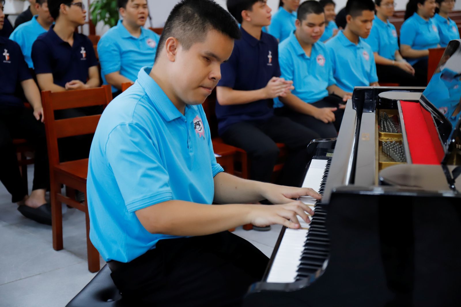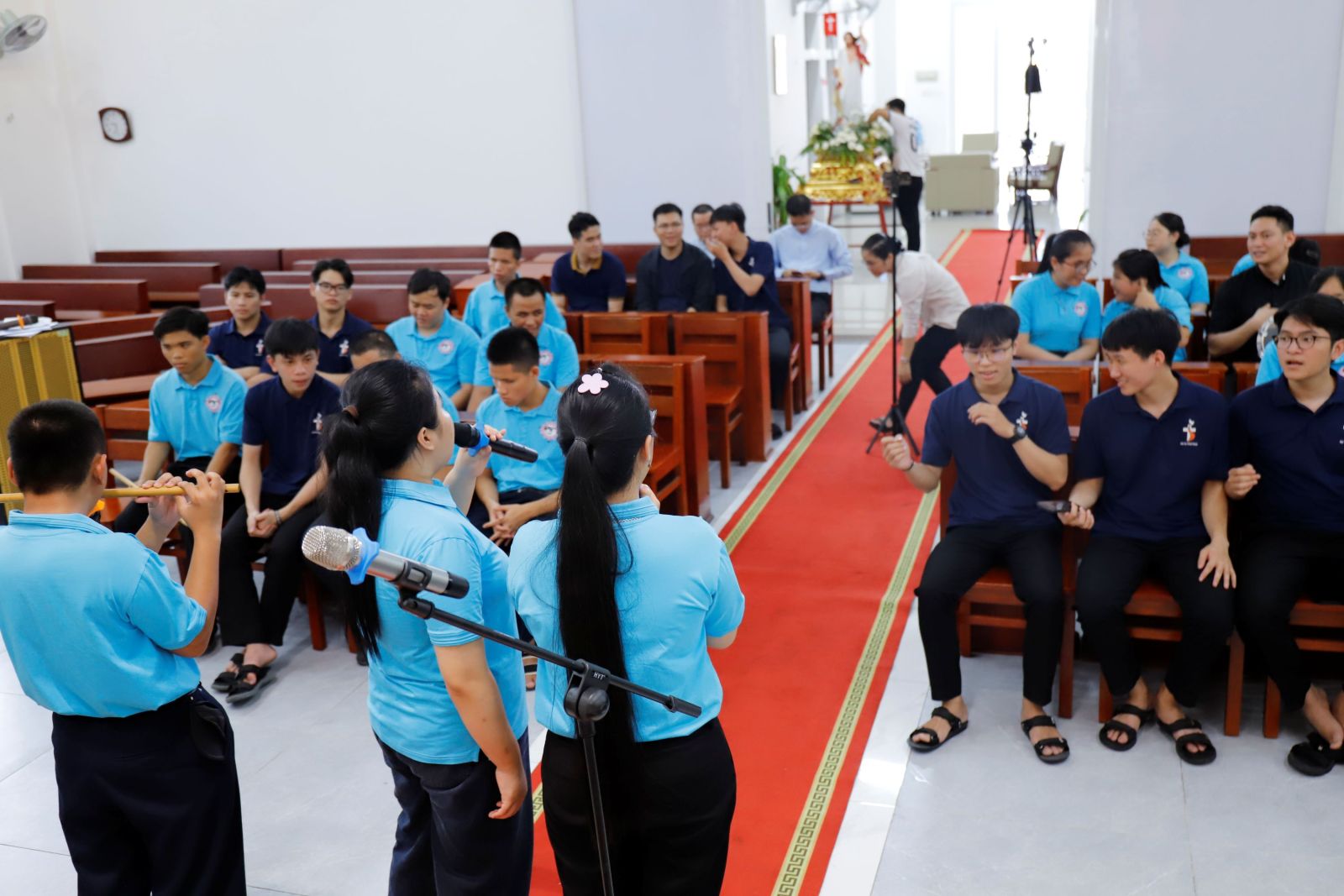 Ngay từ 08g45, bầu khí chương trình đã được khởi động đầy sôi động với phần sinh hoạt do cha Phó Giám đốc chủ sự. Những bài hát vui tươi, những cử điệu sinh động đã nhanh chóng xóa tan khoảng cách ban đầu, nối kết các em khiếm thị, quý cha, anh em dự tu và các bạn sinh viên trong bầu khí thân tình, gần gũi. Tiếng hát vang lên không chỉ là âm thanh của niềm vui, mà còn là nhịp cầu nối những trái tim đang cùng hướng về niềm vui Phục Sinh.