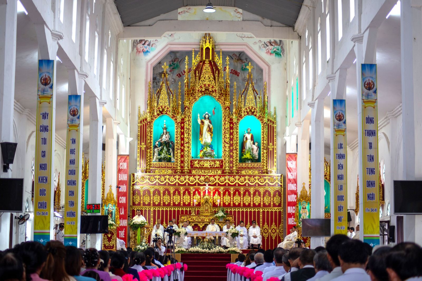 Thánh lễ kết thúc với bài ca Tạ ơn, đoàn đồng tế cùng cộng đoàn cùng hướng lên tòa Chúa để dâng lời tạ ơn Chúa, tạ ơn Đức Mẹ Mân Côi-quan thầy- đã tuôn đổ biết bao Hồng ân xuống cho mảnh đất Xuân Hòa này. Cầu chúc cho những ơn lành qua Tuần Chầu mà cộng đoàn đã lãnh nhận trong Năm Thánh Hy Vọng, mau mắn được chia sẻ, để mọi người cùng nắm tay nhau bước đi trong hy vọng tiến về Đền Thờ vĩnh cửu là vương quốc Thiên Đàng mai sau.